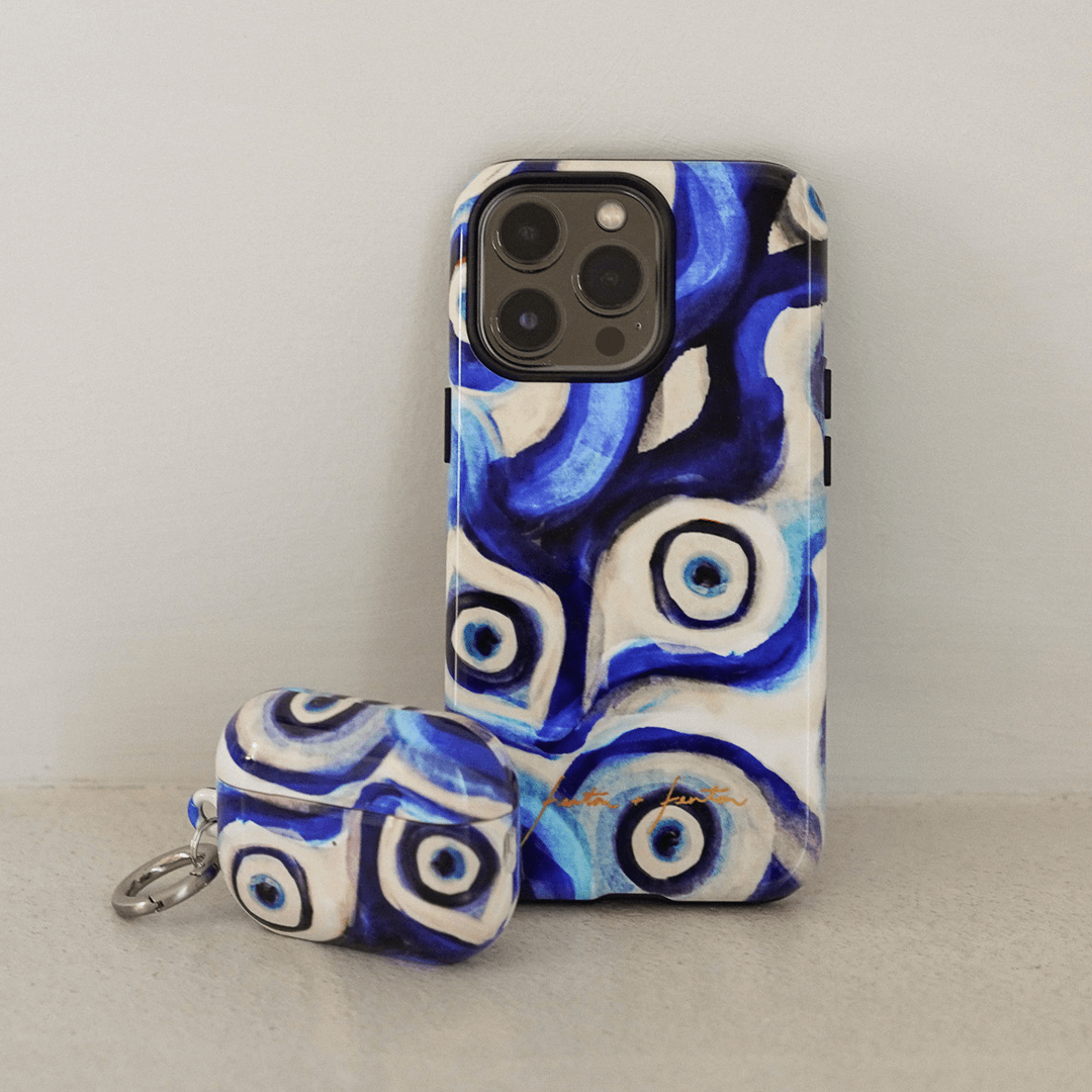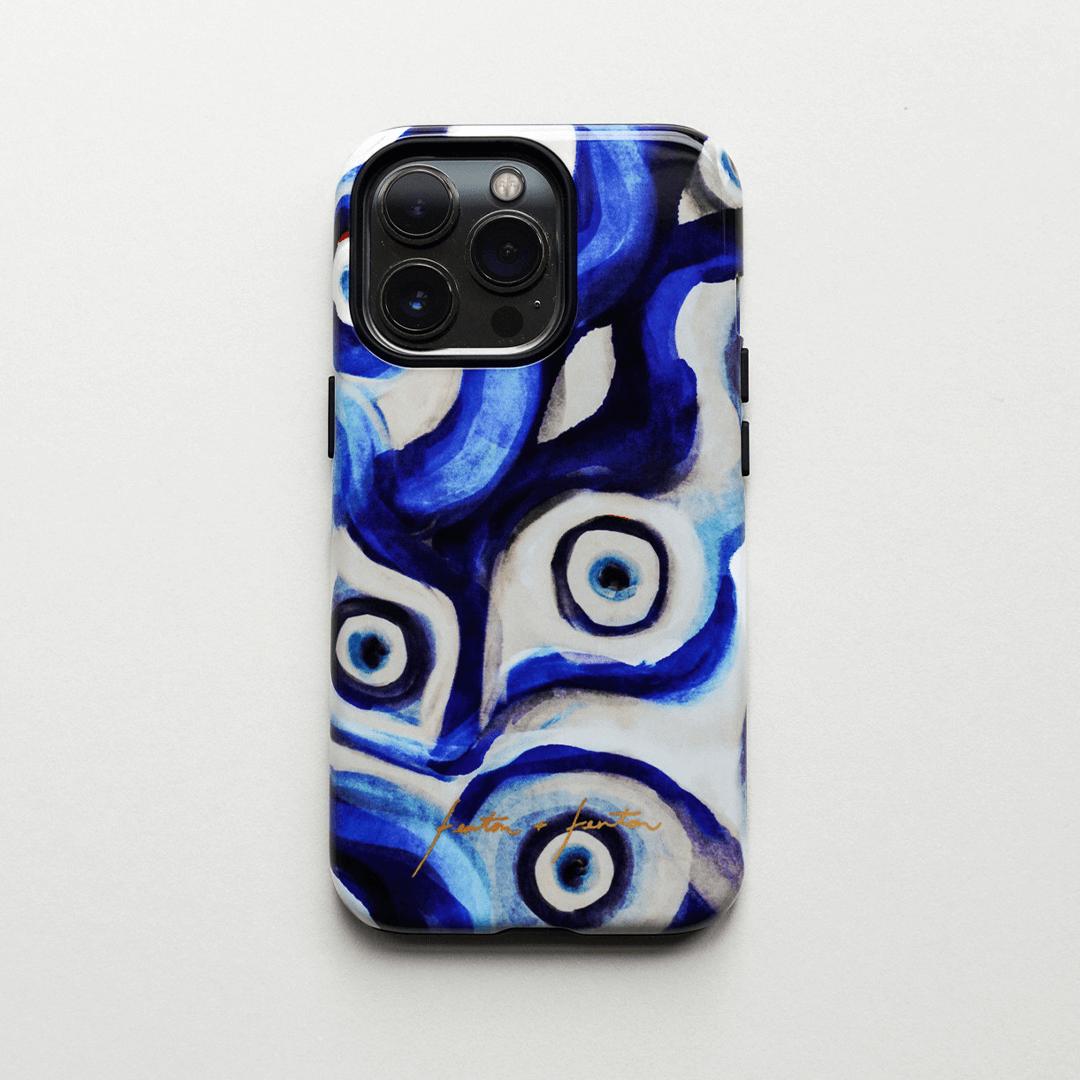 Introducing the Mati phone case, a blue evil eye pattern case that's perfect for your iPhone, Samsung Galaxy or Google Pixel phone. Crafted using our patented printing process, we've seamlessly embedded this striking design into the layers of a robust polycarbonate case. Choose between the lightweight and chic Snap case for a fashion-forward look or opt for the ultra-durable and protective Armoured case to safeguard your device with flair. Elevate your phone's aesthetics while ensuring top-notch protection with this unique accessory.
